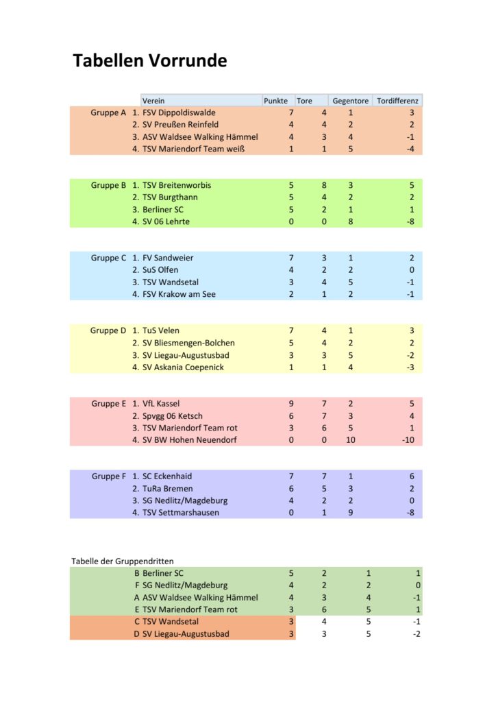 Hervorzuheben ist, dass die Mannschaft aus Friedrichsfeld bei den Gruppenspielen ohne Gegentor geblieben ist!