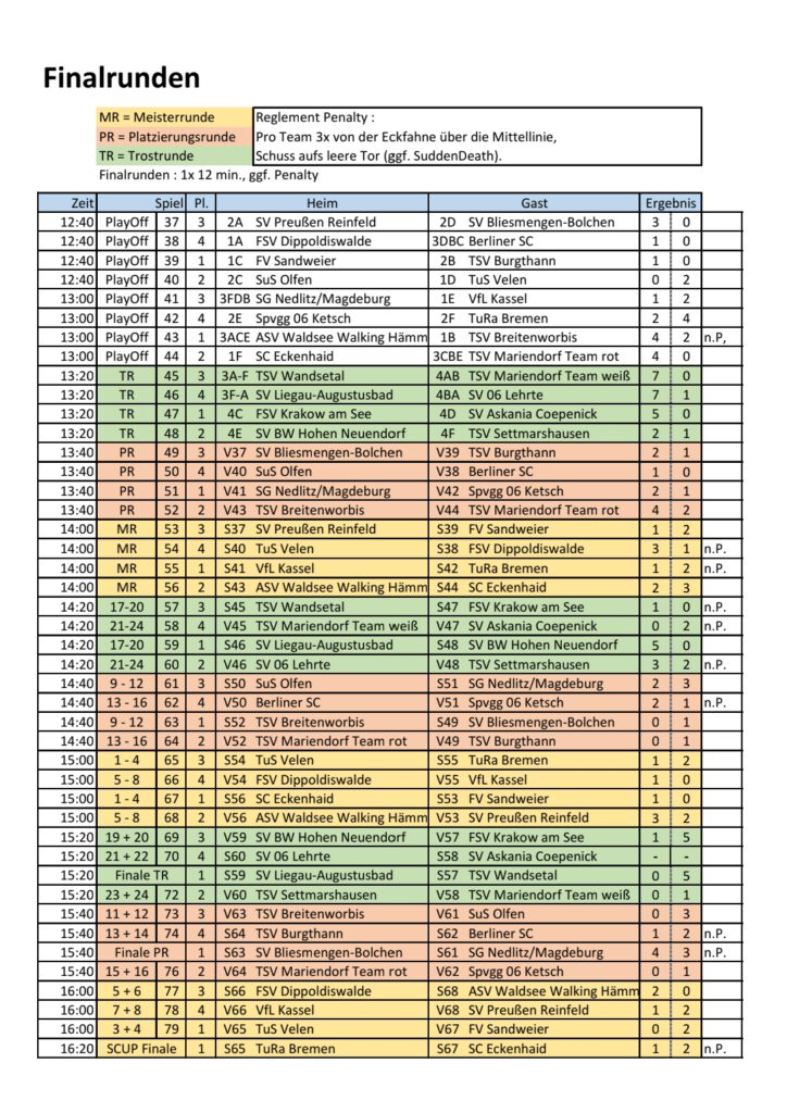 Die Spielzeit betrug 13 Minuten. Geleitet wurden die Partien von insgesamt 4 offiziellen Schiedsrichtern. An dieser Stelle noch einmal Dank für die guten Leistungen. Ohne Schiedsrichter ist es immer schwer zu beurteilen, wann der Ball zu hoch, der Spieler zu schnell oder der Körperkontakt etwas übertrieben ist.